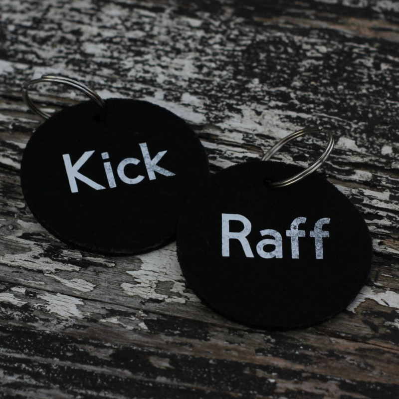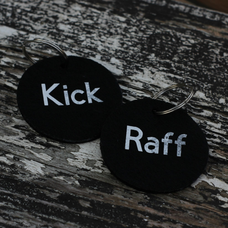 Ronde zwarte sleutelhangers.